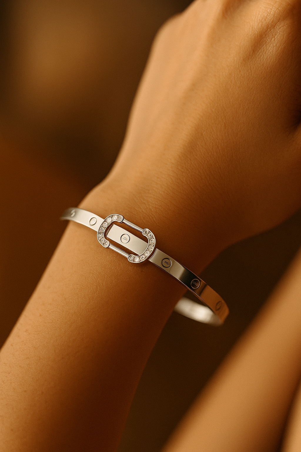 The Clef de Luxe features silver-plated stainless steel with an anti-tarnish finish, designed for daily wear. Backed by a 360-day warranty, it ensures lasting durability and consistent elegance.