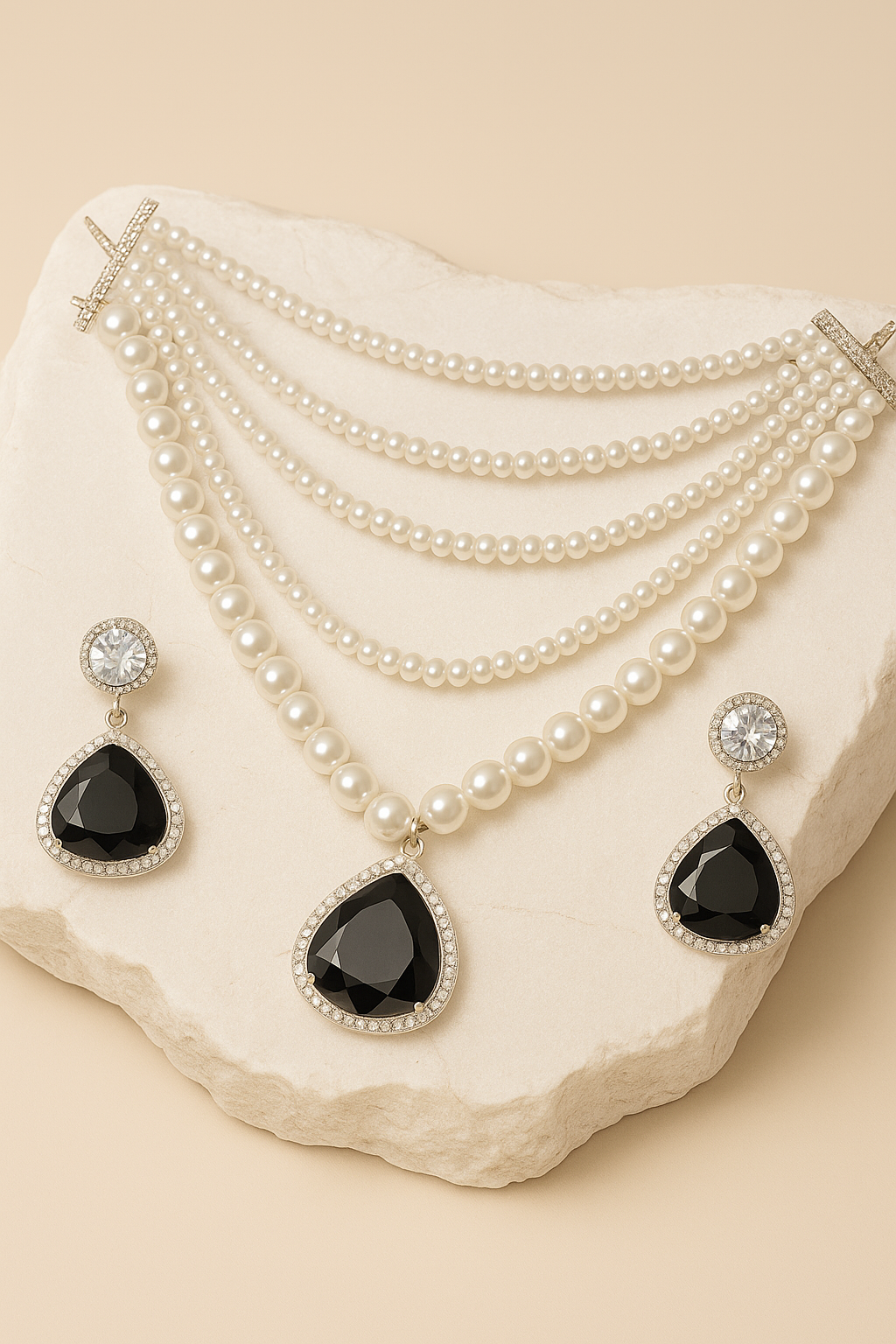 The Ebon Charm Set combines elegant design with durable craftsmanship, featuring silver-plated stainless steel for lasting shine and resistance to tarnish. Ideal for occasion wear, this set offers both style and reliability. With an anti-tarnish finish and a 360-day warranty, it ensures enduring beauty and confidence in every use.