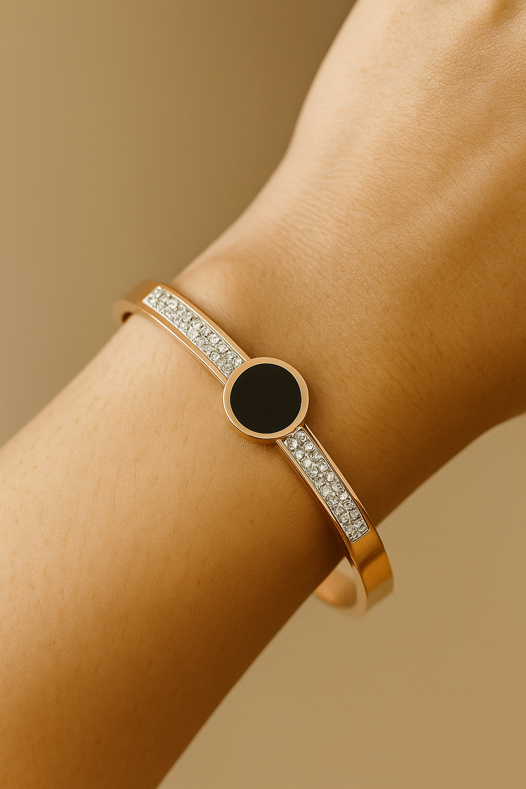 Nakashé Noir features premium stainless steel with gold and rose gold plating, crafted for daily wear. Its anti-tarnish coating ensures enduring shine, backed by a 360-day warranty for dependable quality. Elegant, durable, and designed to last.