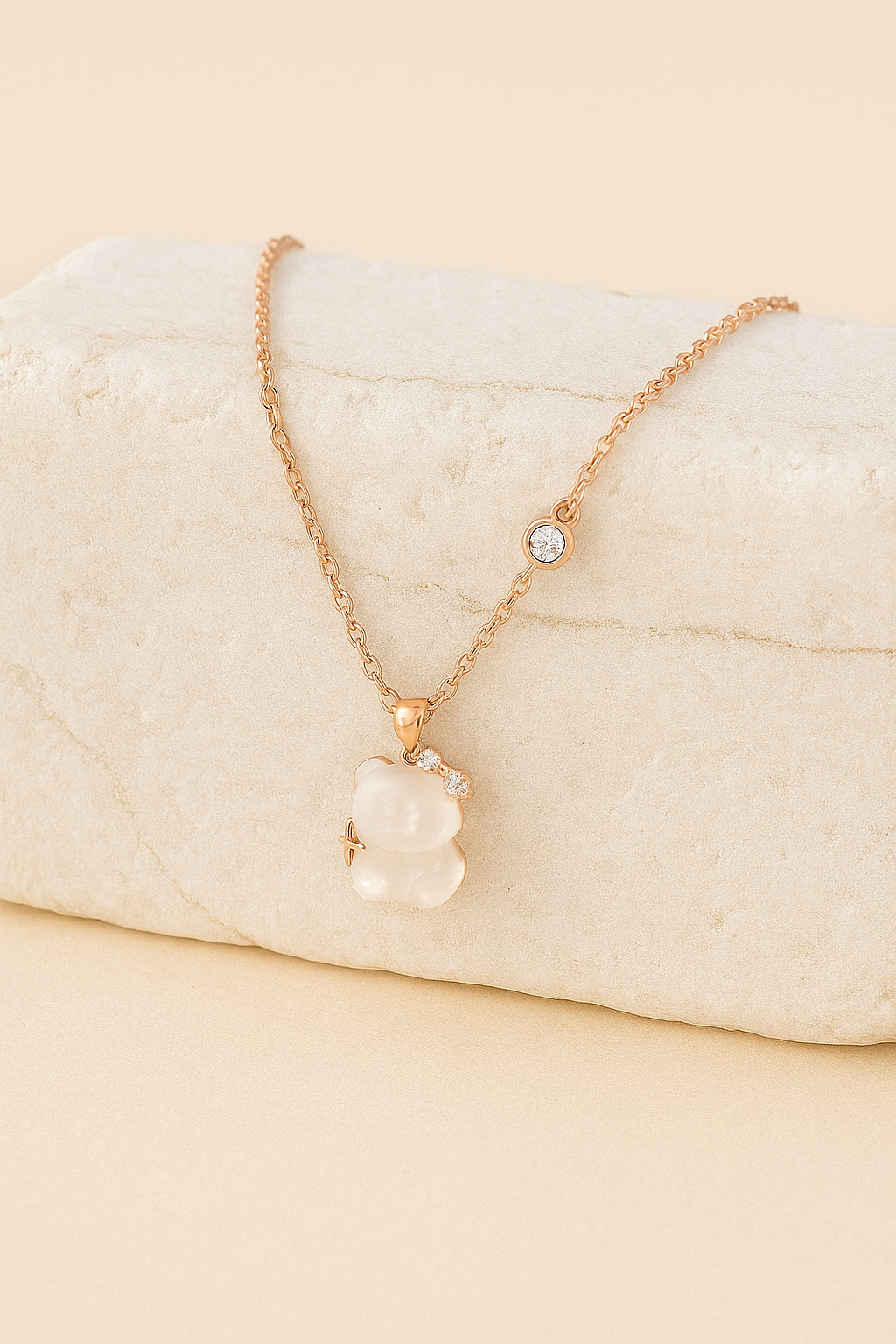 The Ours De Lune pendant combines elegant design with a touch of whimsy, capturing the dreamer’s heart. Crafted with care, it features options in gold-plated rose gold, silver-plated, or durable stainless steel, each treated with an anti-tarnish finish to maintain its shine. Backed by a 360-day warranty, this pendant ensures lasting beauty and quality for everyday wear.