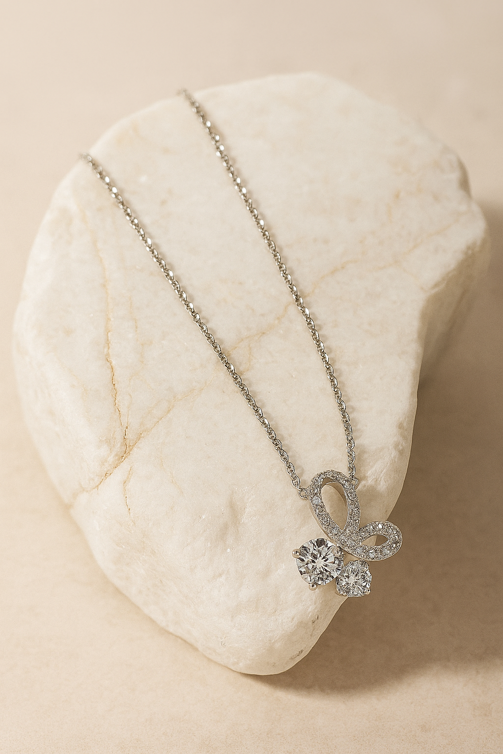 Crafted for everyday elegance, the Papillon combines durable stainless steel with a refined silver-plated finish that resists tarnishing. Designed for daily wear, this piece maintains its shine and quality over time. Backed by a 360-day warranty, it ensures lasting beauty and reliability you can trust.